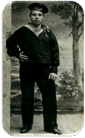 19 декабря 1909 года с 1-го артиллерийского отряда расположенного в г. Кронштадт и началась его флотская служба. [4] Сельский паренек, впервые увидев Балтику, обомлел от восторга, за морским горизонтом ему уже мерещились заморские страны.[13]Зачислили его 24 февраля 1910 года в учебно-артиллерийский отряд в класс гальванеров. [4] Гальванер – это матрос-специалист, обслуживавший артиллерийскую электротехнику на военном корабле. Появление этих специалистов на флоте было вызвано установкой на кораблях аппаратов гальванической стрельбы, откуда и произошло слово. [25] Сдав экзамен на гальванера, получил звание матроса 2-й статьи и был переведен в команду линкора «Андрей Первозванный» 30 апреля 1911 года (Приложение 2.2.; 3.1).