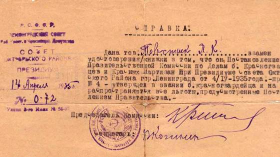 Фото 4.2. Справка, выдана Товстыко Я.К., об утверждении его в звании бывшего