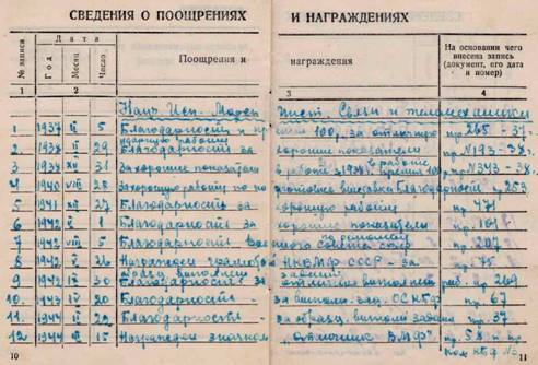 Фото 6.1. Сведения о поощрениях и награждениях из трудовой книжки
