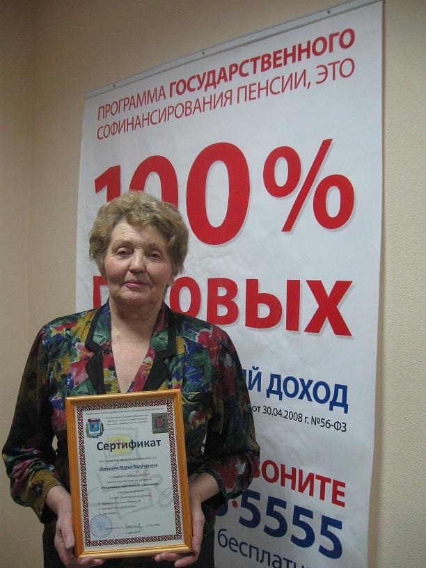 Обобщив опыт данной работы, учитывая тот факт, что обучение на коммерческих курсах не всем доступно с финансовой точки зрения,Управление Пенсионного фонда РФ в Суражском муниципальном районе Брянской области ходатайствовало перед руководством Профессионального лицея №22 г.Суража о создании пилотного проекта по обучению на компьютерных курсах на безвозмездной основе пенсионеров, членов Суражского Отделения «Союза пенсионеров России», желающих пройти такое обучение. Директор ПЛ №22 А.Д.Недосеко нашел возможность пойти навстречу УПФР, предоставив помещение и компьютерную технику для проведения занятий и закрепив за группой из 9 человек молодого, энергичного преподавателя Л.А.Боблак.