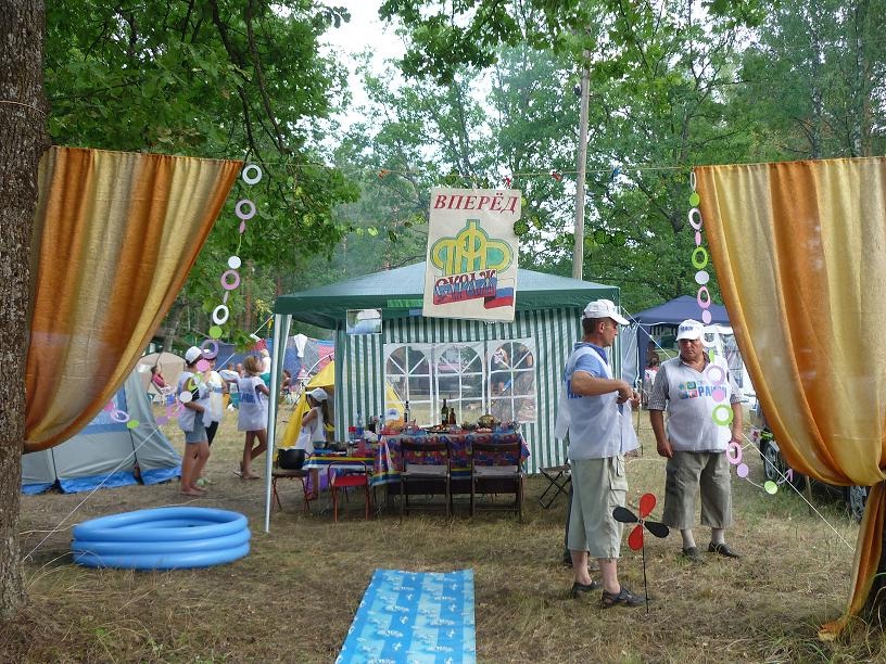 1-2 августа на базе Брянского филиала университета МВД в поселке Белые Берега прошел шестой туристический слет работников Отделения Пенсионного фонда по Брянской области и членов их семей. Его главная цель - пропаганда и внедрение здорового образа жизни, физической культуры и спорта среди специалистов Пенсионного фонда и членов их семей. Туристический слет проводился в полевых условиях на полном самообеспечении команд.