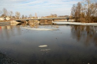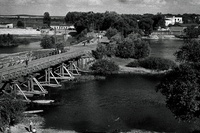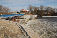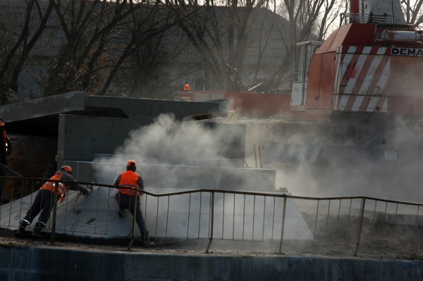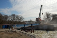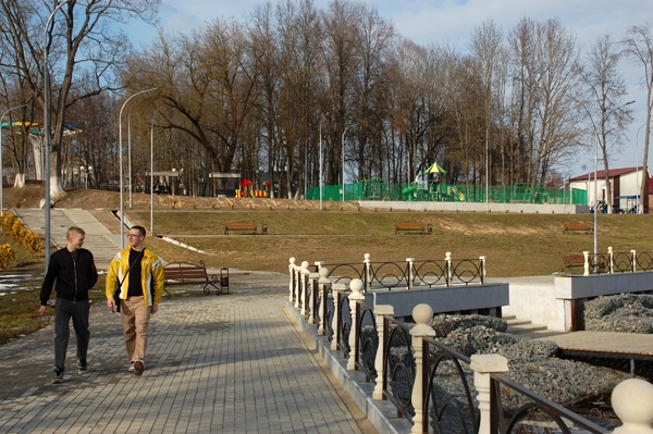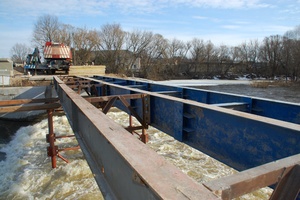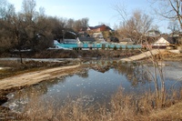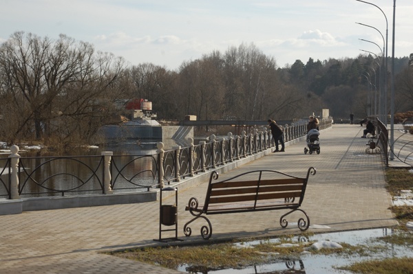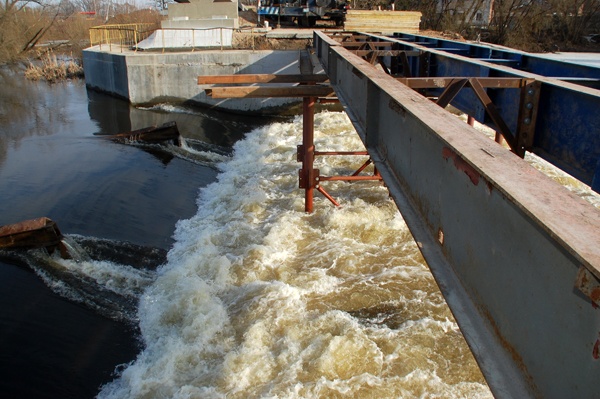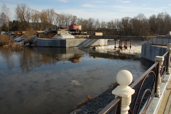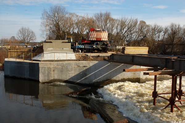 На текущий момент завершены работы по устройству буронабивных свай и подходов. В ближайшее время планируется приступить к установке металлоконструкций. Место, именуемое несколькими поколениями суражан, как «шум», имеет свою историю. В начале 19 и всего 20-го веков здесь находились примитивные деревянные сооружения, предназначенные для круглогодичной поддержки необходимого для производства картона уровня воды. После окончания нынешних сложных монтажных работ пешеходный мост станет своеобразным украшением реки Ипуть, которая получит очередное капитальное гидротехническое сооружение.
