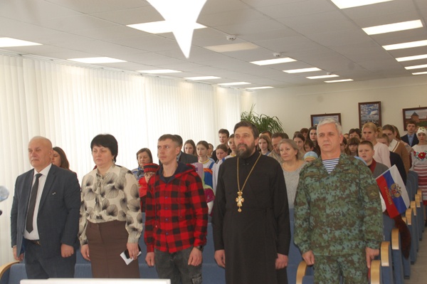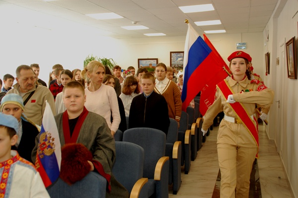 Почетное право внести Государственный флаг Российской Федерации, копию Знамени Победы, флаг Брянской области было предоставлено юнармейскому отряду имени Героя Советского Союза Хомякова Максима Игнатьевича. Юнармейцы вошли в зал под величественные звуки марша Преображенского полка, что придало мероприятию особую значимость.