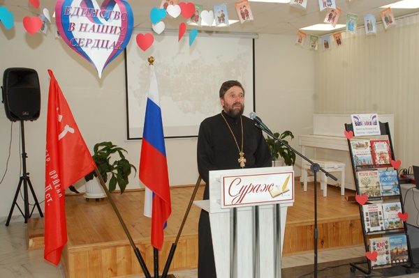 О ярком примере подлинного межнационального единения и нерушимого боевого братства, которые являют собой наши герои — солдаты и офицеры в ходе специальной военной операции говорил военный комиссар Суражского района Брянской области Сергей Николаевич Агеенко Эмоциональным, трогательным было выступление настоятеля храма в честь Благовещения Пресвятой Богородицы г. Суража, протоиерея Владимира Николаевича Фараона. Он обратил особое внимание на то, что подлинное единство народов держится на единой вере — той незримой силе, что скрепляет сердца, преодолевает этнические и культурные различия, превращает множество отдельных «я» в великое «мы