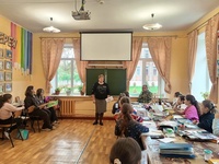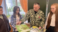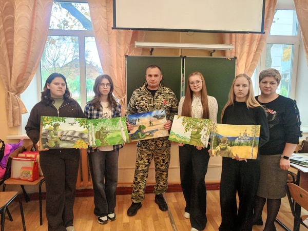 К ребятам из детского объединения «Юный художник» (руководитель Е. Н. Калуга) пришел ветеран боевых действий Алексей Артемович Зайцев. Юные художники продемонстрировали свое мастерство, создавая яркие образы героев своего народа. Рисунки, исполненные красками и карандашами, были наполнены любовью и уважением к защитникам Отечества. Пока дети рисовали, герой делился воспоминаниями о службе, товарищах, о том, что для него значит защита Родины.