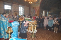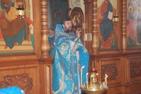 Вдруг храм наполнился небесным светом, и Андрей увидел, как в него вошла Пресвятая Дева Мария, окруженная ангелами, апостолами и святыми. Она поднялась к алтарю, сложила руки в молитве и долгое время молилась за весь мир. После молитвы она сняла с себя омофор — покрывало, которым обычно закрывают голову, — и распростерла его над всеми молящимися в храме.