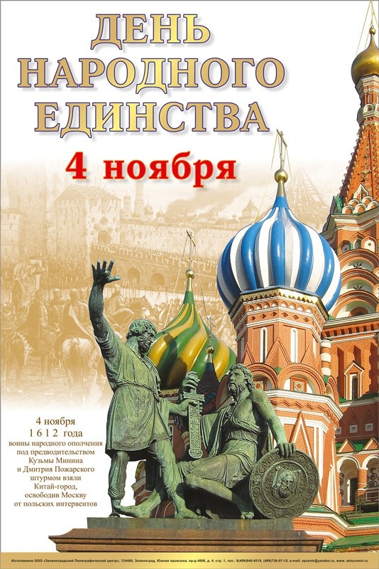 4 ноября в Российской Федерации отмечается один из самых значимых праздников - День народного единства. Праздник служит нам напоминанием о том, что мы – единый народ с богатой историей и культурными традициями. Граждане великой и сильной Державы!