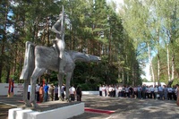У памятного места собираются представители Суражского и руководство Хотимского районов, жители, представители организаций, молодёжь,чтобы почтить память героев.